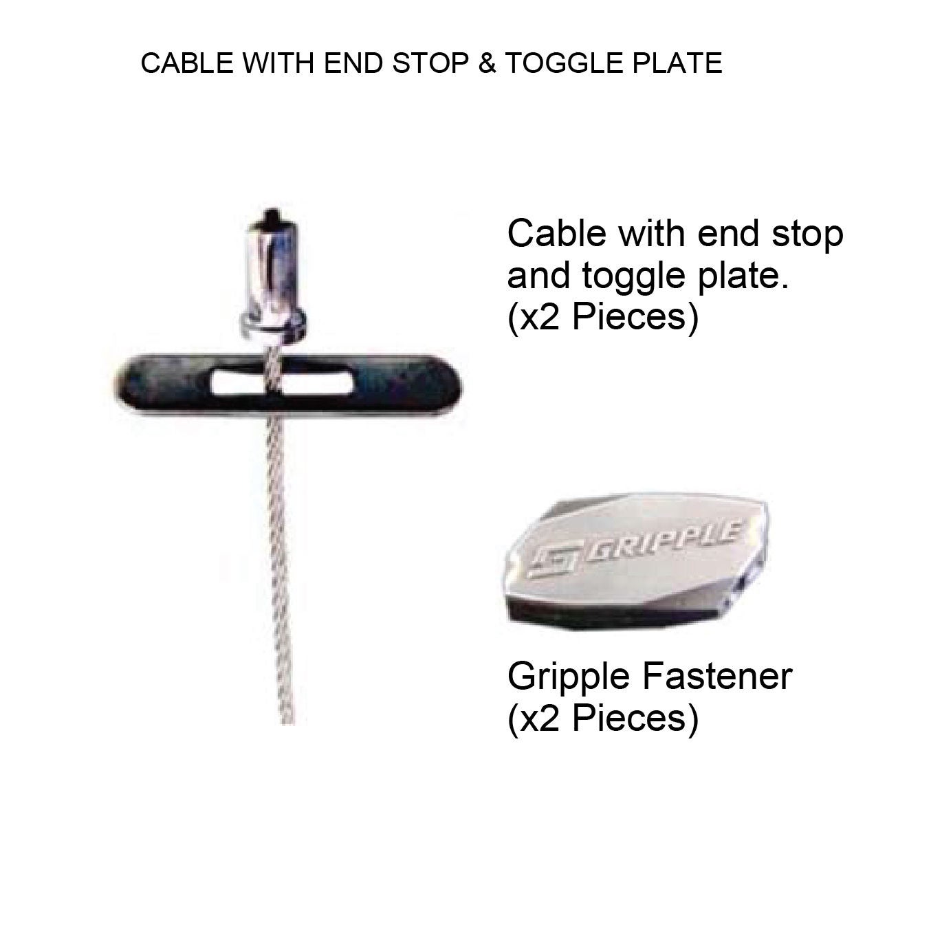 KIT00072 - Câble avec butée et plaque à bascule (2 pièces) et pince de fixation (2 pièces) |